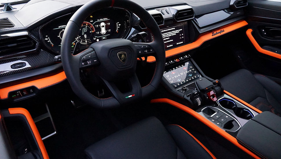 Dark package (Türgriffe, Mittelkonsoleneinsätze, Lamborghini Logo, Tamburo, Handschuhfach-Griff, Kickplates, B&O Tieftönergitter oder Sensonum Logos)